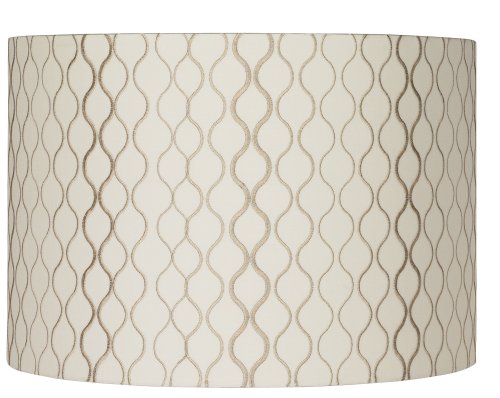 A sophisticated look with a lovely hourglass pattern. This hardback drum shade features off white fabric with tan embroidery. A great way to refresh existing lamps and fixtures.