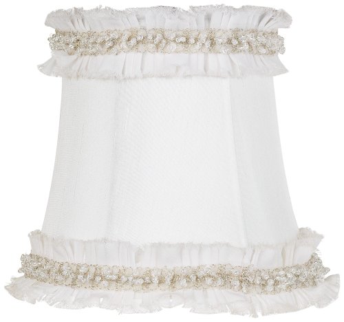 Give a fresh new look to a chandelier or other small fixture with this delightful white fabric bell shade. The faux silk shade has a white raw-edge trim detailed with silver and white beading. A quick and easy way to update your decor. Recommended for use with 25 watt bulbs.